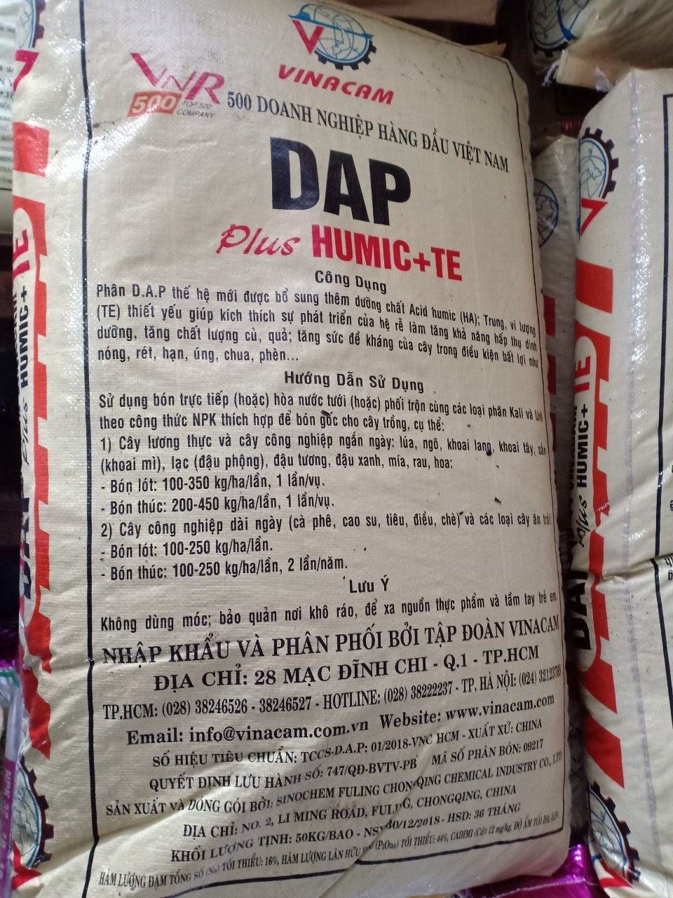 - DAP Plus HUMIC +TE được sản xuất, kiểm soát nghiêm ngặt về chất lượng sản phẩm theo tiêu chuẩn Châu Âu và được nhập khẩu, phân phối độc quyền trên toàn lãnh thổ Việt Nam bởi Công ty CP Vinacam.