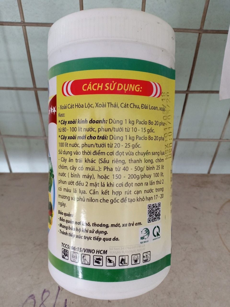 Bo: 2000ppm, Ca: 70ppm, Mg: 80ppm, Zn:70ppm, Fe:50ppm, Mn: 100ppm, Phụ gia đặc biệt: Paclo Butrazol 20